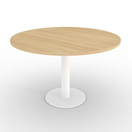 Table de restauration ronde dimaètre 160 cm décor chêne clair sur piétement central rond finition blanc