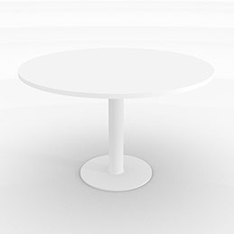 Table de restauration ronde dimaètre 160 cm décor blanc neige sur piétement central rond finition blanc