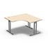Bureau compact symétrique 90° IdoL L. 140 x L. 140 x Rt 80 cm - retour à droite décor érable blanc sur pieds I fixes centrés - traverse finition gris aluminium sans carter