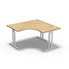 Bureau compact symétrique 90° IdoL L. 140 x L. 140 x Rt 80 cm - retour à droite décor chêne clair sur pieds I fixes centrés - traverse finition blanc sans carter