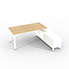 Bureau de direction sur retour porteur gamme RIO - 180 x 165 cm - plateau mélaminé chêne clair - piètement blanc - portes blanches