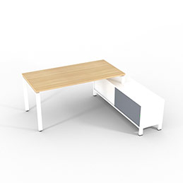 Retour porteur en mélaminé blanc ou gris assortis à la couleur du piètement. Les portes sont en altuglas blanc ou gris fumé et se fixes à gauche ou à droite du bureau.