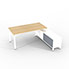 Bureau de direction sur retour porteur gamme RIO - 180 x 165 cm - plateau mélaminé chêne clair - piètement blanc - portes gris fumé