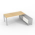 Bureau de direction sur retour porteur gamme RIO - 200 x 165 cm - plateau mélaminé chêne clair - piètement gris aluminium - portes blanches