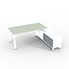 Bureau de direction sur retour porteur gamme RIO - 180 x 165 cm - plateau verre blanc - piètement blanc - portes gris fumé