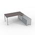 Bureau de direction sur retour porteur gamme RIO - 180 x 165 cm - plateau verre gris souris - piètement gris aluminium - portes gris fumé
