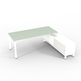 Retour porteur en mélaminé blanc ou gris assortis à la couleur du piètement. Les portes sont en altuglas blanc ou gris fumé et se fixes à gauche ou à droite du bureau.