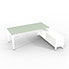 Bureau de direction sur retour porteur gamme RIO - 200 x 165 cm - plateau verre blanc - piètement blanc - portes blanches