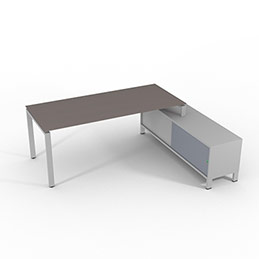 Retour porteur en mélaminé blanc ou gris assortis à la couleur du piètement. Les portes sont en altuglas blanc ou gris fumé et se fixes à gauche ou à droite du bureau.