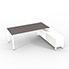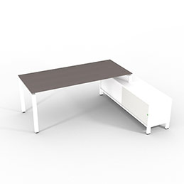 Retour porteur en mélaminé blanc ou gris assortis à la couleur du piètement. Les portes sont en altuglas blanc ou gris fumé et se fixes à gauche ou à droite du bureau.