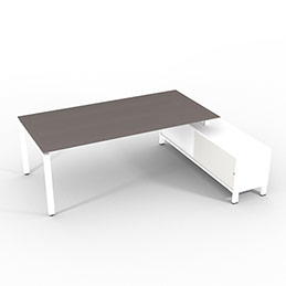 Retour porteur en mélaminé blanc ou gris assortis à la couleur du piètement. Les portes sont en altuglas blanc ou gris fumé et se fixes à gauche ou à droite du bureau.