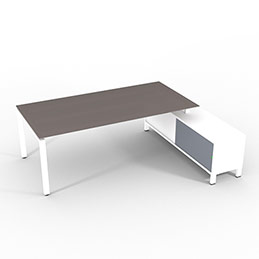 Retour porteur en mélaminé blanc ou gris assortis à la couleur du piètement. Les portes sont en altuglas blanc ou gris fumé et se fixes à gauche ou à droite du bureau.
