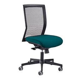 Siège de bureau à roulettes Coach - dossier résille - assise tissu vert canard - synchrone - piètement métal noir
