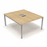 Bureau Arial partagé L. 140 x P. 165 cm ép. 19 mm - monoplateau mélamine chêne clair avec 2 trappes et goulotte incluses - piétement arche métal lisse gris aluminium