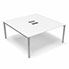Bureau Arial partagé L. 160 x P. 165 cm ép. 19 mm - monoplateau mélamine blanc neige avec 2 trappes et goulotte incluses - piétement arche métal lisse gris aluminium