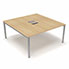 Bureau Arial partagé L. 160 x P. 165 cm ép. 19 mm - monoplateau mélamine chêne clair avec 2 trappes et goulotte incluses - piétement arche métal lisse gris aluminium