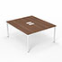 Bureau Arial partagé L. 140 x P. 165 cm ép. 25 mm - monoplateau mélamine noyer ambré avec 2 trappes et goulotte incluses - piétement arche métal lisse blanc