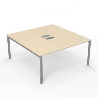 Bureau Arial partagé L. 160 x P. 165 cm ép. 25 mm - monoplateau mélamine érable blanc avec 2 trappes et goulotte incluses - piétement arche métal lisse gris aluminium