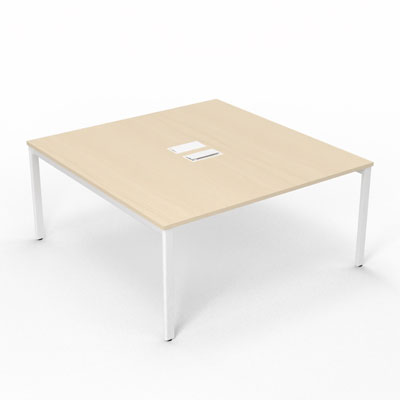 Bureau Arial partagé L. 160 x P. 165 cm ép. 25 mm - monoplateau mélamine érable blanc avec 2 trappes et goulotte incluses - piétement arche métal lisse blanc