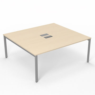 Bureau Arial partagé L. 180 x P. 165 cm ép. 25 mm - monoplateau mélamine érable blanc avec 2 trappes et goulotte incluses - piétement arche métal lisse gris aluminium