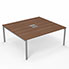 Bureau Arial partagé L. 180 x P. 165 cm ép. 25 mm - monoplateau mélamine noyer ambré avec 2 trappes et goulotte incluses - piétement arche métal lisse gris aluminium