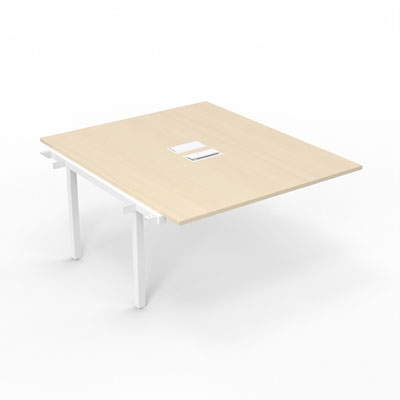 Bureau Arial partagé - élément suivant - L. 140 x P. 165 cm ép. 25 mm - monoplateau mélamine érable blanc avec 2 trappes et goulotte incluses - piétement arche métal lisse blanc