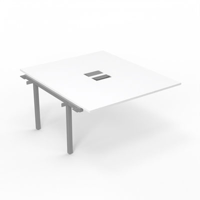 Bureau Arial partagé - élément suivant - L. 140 x P. 165 cm ép. 25 mm - monoplateau mélamine blanc neige avec 2 trappes et goulotte incluses - piétement arche métal lisse gris aluminium