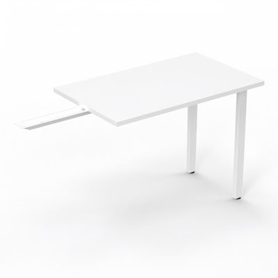 Retour suspendu Arial L. 100 x P. 60 cm ép. 25 mm - plateau mélamine blanc neige - piétement métal lisse blanc