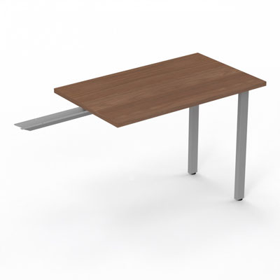 Retour suspendu Arial L. 100 x P. 60 cm ép. 25 mm - plateau mélamine noyer ambré - piétement métal lisse gris aluminium