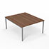 Table de réunion Arial L. 140 x P. 165 cm ép. 25 mm - plateau mélamine noyer ambré - piétement arche métal lisse gris aluminium