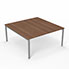 Table de réunion Arial L. 160 x P. 165 cm ép. 25 mm - plateau mélamine noyer ambré - piétement arche métal lisse gris aluminium
