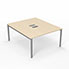 Bureau Arial partagé L. 140 x P. 165 cm ép. 25 mm - monoplateau mélamine érable blanc avec 2 trappes et goulotte incluses - piétement arche métal lisse gris aluminium