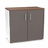 Armoire mélamine Armand 1 tablette H. 73,5 x L. 80 x P. 43,2 cm corps d'armoire finition mélamine blanc neige avec 2 portes verre émaillé gris souris et top structurel mélamine noyer ambré
