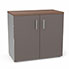 Armoire mélamine Armand 1 tablette H. 73,5 x L. 80 x P. 43,2 cm corps d'armoire finition mélamine gris aluminium avec 2 portes verre émaillé gris souris et top structurel mélamine noyer ambré