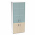 Armoire mélamine Armand 4 tablettes H. 202,1 x L. 80 x P. 43,2 cm corps et top finition mélamine blanc neige avec 2 portes soft-closing H 73,5 cm mélamine érable blanc et 2 portes H. 133,5 cm verre dépoli transparent