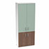 Armoire mélamine Armand 4 tablettes H. 202,1 x L. 80 x P. 43,2 cm corps et top finition mélamine blanc neige avec 2 portes soft-closing H 73,5 cm mélamine noyer ambré et 2 portes H. 133,5 cm verre émaillé blanc