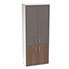 Armoire mélamine Armand 4 tablettes H. 202,1 x L. 80 x P. 43,2 cm corps et top finition mélamine blanc neige avec 2 portes soft-closing H 73,5 cm mélamine noyer ambré et 2 portes H. 133,5 cm verre émaillé gris souris