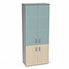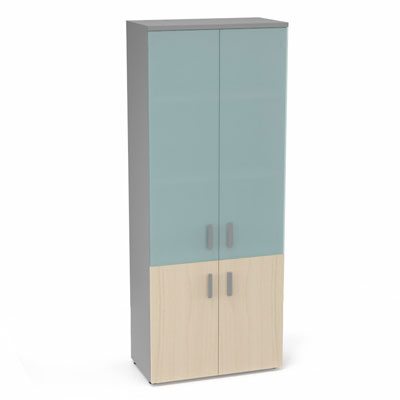 Armoire mélamine Armand 4 tablettes H. 202,1 x L. 80 x P. 43,2 cm corps et top finition mélamine gris aluminium avec 2 portes soft-closing H 73,5 cm mélamine érable blanc et 2 portes H. 133,5 cm verre dépoli transparent