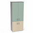 Armoire mélamine Armand 4 tablettes H. 202,1 x L. 80 x P. 43,2 cm corps et top finition mélamine gris aluminium avec 2 portes soft-closing H 73,5 cm mélamine érable blanc et 2 portes H. 133,5 cm verre émaillé blanc