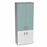 Armoire mélamine Armand 4 tablettes H. 202,1 x L. 80 x P. 43,2 cm corps et top finition mélamine gris aluminium avec 2 portes soft-closing H 73,5 cm mélamine blanc neige et 2 portes H. 133,5 cm verre dépoli transparent