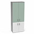 Armoire mélamine Armand 4 tablettes H. 202,1 x L. 80 x P. 43,2 cm corps et top finition mélamine gris aluminium avec 2 portes soft-closing H 73,5 cm mélamine blanc neige et 2 portes H. 133,5 cm verre émaillé blanc