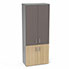 Armoire mélamine Armand 4 tablettes H. 202,1 x L. 80 x P. 43,2 cm corps et top finition mélamine gris aluminium avec 2 portes soft-closing H 73,5 cm mélamine chêne clair et 2 portes H. 133,5 cm verre émaillé gris souris
