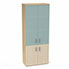 Armoire mélamine Armand 4 tablettes H. 202,1 x L. 80 x P. 43,2 cm corps et top finition mélamine chêne clair avec 2 portes soft-closing H 73,5 cm mélamine érable blanc et 2 portes H. 133,5 cm verre dépoli transparent