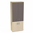Armoire mélamine Armand 4 tablettes H. 202,1 x L. 80 x P. 43,2 cm corps et top finition mélamine chêne clair avec 2 portes soft-closing H 73,5 cm mélamine érable blanc et 2 portes H. 133,5 cm verre émaillé gris souris