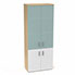 Armoire mélamine Armand 4 tablettes H. 202,1 x L. 80 x P. 43,2 cm corps et top finition mélamine chêne clair avec 2 portes soft-closing H 73,5 cm mélamine blanc neige et 2 portes H. 133,5 cm verre dépoli transparent