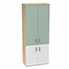 Armoire mélamine Armand 4 tablettes H. 202,1 x L. 80 x P. 43,2 cm corps et top finition mélamine chêne clair avec 2 portes soft-closing H 73,5 cm mélamine blanc neige et 2 portes H. 133,5 cm verre émaillé blanc