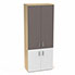 Armoire mélamine Armand 4 tablettes H. 202,1 x L. 80 x P. 43,2 cm corps et top finition mélamine chêne clair avec 2 portes soft-closing H 73,5 cm mélamine blanc neige et 2 portes H. 133,5 cm verre émaillé gris souris