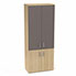 Armoire mélamine Armand 4 tablettes H. 202,1 x L. 80 x P. 43,2 cm corps et top finition mélamine chêne clair avec 2 portes soft-closing H 73,5 cm mélamine chêne clair et 2 portes H. 133,5 cm verre émaillé gris souris