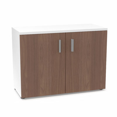 Armoire mélamine Armand 1 tablette H. 73,5 x L. 100 x P. 43,2 cm corps et top finition mélamine blanc neige avec 2 portes soft-closing mélamine noyer ambré