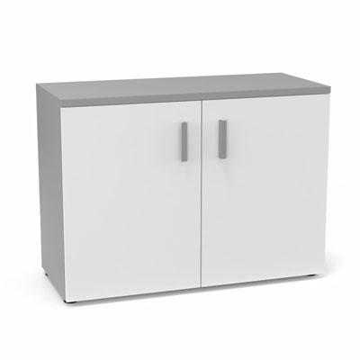 Armoire mélamine Armand 1 tablette H. 73,5 x L. 100 x P. 43,2 cm corps et top finition mélamine gris aluminium avec 2 portes soft-closing mélamine blanc neige